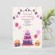 Um convite de aniversário festivo com bandeiras de festas, balões, presentes e um bolo de aniversário com quatro velas. (Vetor de aniversário criado por freepik - www.freepik.com).