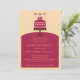 Convite de aniversário de casamento moderno, fofo e elegante. Ótimo para uma festa, almoço, jantar ou brunch para celebrar um marco importante no casamento. Apresenta um bolo com os anos de aniversário no topo e uma grinalda com pequenas bandeiras decorativas. O design é feito na cor típica do aniversário de 40 anos, o vermelho rubi. Adicione sua própria mensagem.