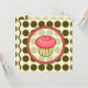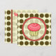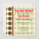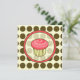 Um convite com um bolo de aniversário rosa delineado em marrom dentro de uma moldura rosa e marrom combinando. O fundo é bolinhas sobre bege. O lado oposto apresenta um fundo de bolinhas combinando com texto marrom e rosa sobre um lado transparente. Personalize com detalhes do seu evento.