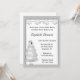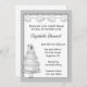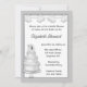 O convite com bolo prateado foi lançado com noiva e noivo, quadro prateado e sinos brancos na borda superior. Mostrado como um chá de panela, mas também perfeito para aniversário ou festa de noivado.