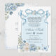 Convite de Quinceanera Prata de Borboleta Coquette de Laço Azul Empoeirado, Convite Floral de Rosa Doce 16, Mis Quince XV Anos Editável