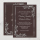 Uma simples moldura de prata com acentos nos cantos envolve sua mensagem. Coloque os primeiros nomes dos Noivos e a data em um lado, dando aos seus convites um clima menos formal. Do outro lado, as informações pertinentes do casamento adicionam um toque clássico.