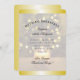 Convite de café da manhã de casamento de Natal com bordas douradas e inversas. Uma árvore cintilante e a imagem de uma vela são o fundo para uma tipografia moderna com o texto curvo "café da manhã de casamento" no topo. Abaixo, convida convidados especiais para jantar com os recém-casados e deseja-lhes "boa viagem" em sua lua de mel.