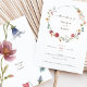 Este convite de casamento de aquarela de flores silvestres é perfeito para casamentos boho, de primavera e temáticos de flores. Caligrafia manuscrita moderna e direta, combinada com uma fonte clássica itálica-serifa. Personalizável em qualquer cor. Mantenha o design minimalista e simples, como está, ou personalize-o adicionando seus gráficos e obras de arte.