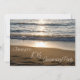 Convite de cartão de festa de aniversário de casamento de 10 anos com uma bela foto das ondas quebrando na praia ao pôr do sol. Personalizável com os detalhes da sua festa.