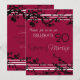 Convite de festa de aniversário de 20 anos de casamento em vermelho vibrante, preto e branco, com design floral elegante. Insira suas informações personalizadas no verso para o seu aniversário.