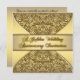Um design de imagens Digitalbcon com um tema de cor dourada para este convite de cartão de bodas de ouro único, completo com uma variedade de imagens personalizadas, formas, padrões, estilos e fontes. Ele também vem com um design complementar no verso com letras de texto personalizáveis para se adequar à sua ocasião especial.