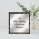 Um design de imagens Digitalbcon com um tema de cores preto e prata com imagens personalizadas, formas, padrões, estilos e fontes neste cartão de convite de aniversário de casamento Silver único. Ele vem completo com um design complementar no verso com letras de texto personalizáveis para se adequar à sua ocasião especial.