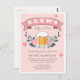 Brinde ao amor com nosso encantador convite de cartão postal! Com uma faixa divertida com 'Cervejas antes de eu dizer sim' e uma ilustração encantadora de um copo de cerveja rodeado por folhagens e corações em um lindo fundo rosa, este convite define o tom perfeito para uma despedida de solteira divertida e festiva!