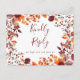 Um cartão de RSVP de folhas de outono com tipografia chic. O verso apresenta seus detalhes e um pedido de música para convidados. Projetado por Thisisnotme©