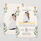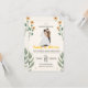 Celebre o amor com este convite de casamento doce e elegante, apresentando uma noiva e um noivo ilustrados, emoldurados por delicados acentos florais e folhagens. Os tons quentes e terrosos, combinados com uma tipografia divertida, criam um clima charmoso e moderno—perfeito para casais que planejam um casamento relaxado, no jardim ou voltado para a família.