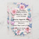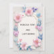 Um belo design de convite de casamento com elementos chamativos, como flores cor-de-rosa, corações desenhados à mão e toques de aquarela macia. As cores pastel — rosa claro, lavanda pálida, azul-céu e branco cremoso — criam um toque encantador e romântico.