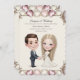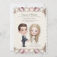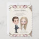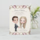 Design profissional de convite de casamento com corações e imagem de desenho animado de homem e mulher de mãos dadas