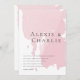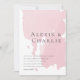 Um convite de casamento com um fundo rosa lavado em aquarela abstrata.