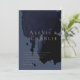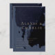 Um convite de casamento com um fundo de lavagem de aquarela abstrata azul-marinho e preto. Este convite de casamento minimalista é perfeito para um tema de casamento moderno. Os textos em dourado acentuam perfeitamente o fundo azul-marinho.