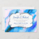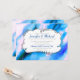 Um convite de casamento moderno com uma moldura decorativa sofisticada no centro com uma imagem de fundo legal de um design de aquarela cósmica. Azul, rosa e roxo se misturam para criar um padrão de mármore funky de espaço exterior.