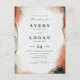 Convites de Casamento Abstratos em Aquarela Etérea em Verde Teal Escuro e Cobre. Este convite de casamento moderno é embelezado à mão com cores ricas que são perfeitas para o Outono. Mostrado na paleta de cores de casamento em Teal Escuro: Verde Pavão Teal Escuro, Ferrugem de Cobre, Ouro Empoeirado, Bosque de Amêndoas e Bege Bisque. Com detalhes de folha de alumínio glitter metálico falso e uma fonte de script com caudas, a coleção de casamento em aquarela etérea certamente tornará seu casamento memorável e lindo!