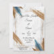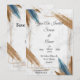 Convite de casamento simples e encantador branco, dourado e azul. nome, horários, datas e local totalmente personalizáveis de acordo com as suas necessidades