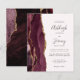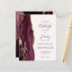 A borda esquerda deste elegante convite de casamento moderno mostra uma borda de água borrifada, cortada com falsa brilho dourado. O texto personalizável combina letra de escrita manual, chapa de impressão e fontes itálicas em cinzas de carvão em um fundo cor-de-rosa esbranquiçado. O lado inverso apresenta uma burgundy e uma design de agata dourada. Uma combinação perfeita de cores para um casamento outono!