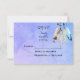 Um convite de casamento em aquarela. Um design em aquarela com quatro penas delicadas e encorpadas juntas penduradas na parte superior. O fundo é uma textura de aquarela roxa azulada suave. Um motivo tribal hippie bobo com um sentimento nativo americano.