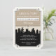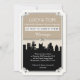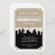 Ponha o tom para o seu elegante casamento da cidade perfeitamente com este design de convite que conta a história do romance nos telhados! Tem uma paleta de cores neutras para complementar o tema do casamento, e apresenta uma linda silhueta de um casal dançando no horizonte.