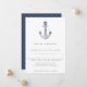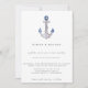 Belo convite de casamento temático náutico com âncora com corda rústica aquarela e nó náutico azul-marinho.