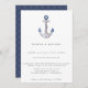 Belo convite de casamento temático náutico com âncora com corda em aquarela rústica e padrão de nó náutico azul-marinho.
