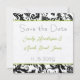 Convites de casamento com padrões florais damasco preto e branco vintage moderno com acabamento verde-maçã. Perfeito para temas de casamento Rococó Barroco, Renascimento Medieval, Art Déco Art Nouveau, Gatsby dos anos 20, casamentos vitorianos ou temas de casamento de fazenda elegante.