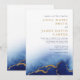 Estes convites de casamento aquarela azul e dourado elegantes e modernos são totalmente personalizáveis e perfeitos para um casamento contemporâneo.