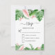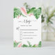 Cartões de Confirmação de Casamento de Primavera ou Verão com Aquarela de Folhas de Palmeira Verde Tropical e Flores Florais Rosa Bege - inclui uma bela e elegante tipografia de roteiro com flores botânicas tropicais modernas e folhagens para a celebração especial do dia do casamento.