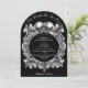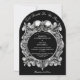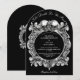 Este convite de casamento arqueado com caveiras góticas 'até que a morte nos separe' pode ser personalizado com suas informações em tipografia elegante e iniciais de monograma no verso. Projetado por Thisisnotme