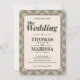 Celebre seu dia especial com este elegante convite de casamento inspirado no Art Déco. Este design apresenta um padrão geométrico sofisticado em tons de verde-sage e rosa empoeirado. A frente apresenta um layout limpo e clássico para os detalhes da cerimônia, enquanto a parte traseira inclui um monograma elegante e um código QR funcional para fácil RSVP dos convidados e informações do evento. Perfeito para casais que buscam uma mistura de charme vintage e conveniência moderna. Modelo totalmente personalizável.