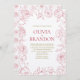 Peônias vermelhas bordam a tipografia elegante deste convite de casamento. Você pode personalizar o texto para o seu evento.