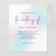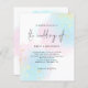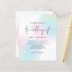 Convite De Casamento Azul Cor-De-Água Rosa. Um alternativo de 4,5 pol x 5,6 pol com preço inferior. Disponível em um STOCK DE CARTÃO SEMI-GLOSS 110 lb, que é a opção padrão (mais espesso para convites), OU um STOCK de PAPEL THINNER FINISH 80 lb FINISH (ideal para gabinetes). Os envelopes são um extra opcional e são ligeiramente maiores que o tamanho da placa. Uma tipografia de na moda set em preto para o título principal do Casamento de complementar o resto do texto que você pode facilmente personalizar, está sobreposta a um belo fundo pastel de lavagem a aquarela de dois cantos em tons de rosa e azul, com salpicos de ouro no canto superior direito e inferior esquerdo.