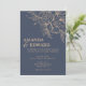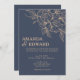 Um convite de casamento azul-escuro elegante. O padrão floral eficaz dá a este convite uma aparência elegante.