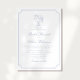 Convite de casamento azul e branco clássico com uma moldura fina e elegante e uma ilustração delicada de uma tigela de frutas desenhada à mão. Tipografia limpa e atemporal com um layout refinado - perfeito para casais que amam elegância tradicional com um toque sutil de vintage. Personalize facilmente todo o texto para os detalhes do seu casamento, local e horário.