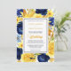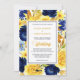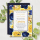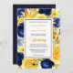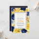 Brilhante e colorido é este convite de casamento que tem uma borda de flores de aquarela e folhagem em marinho azul e amarelo, com toques de azul claro e verde. Seu texto personalizado está em azul escuro e ouro amarelo no centro de um bloco branco que está alinhado em azul escuro. A parte de trás do convite é azul escuro, com uma camada de confete de ouro no topo. Linda, moderna e chique! As cores do presente convite são adequadas de primavera a outono. *Este design usou trabalho de arte de LABFcreations.
