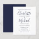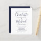 Convite de Casamento Azul Marinho Chic Script Econ
