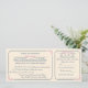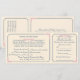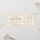 Este convite de casamento impresso de forma bonita no estilo de um bilhete vintage também incorpora um cartão de resposta RSVP destacável. A cor do fundo é um creme pálido. Simples molduras arredondadas em azul-marinho francês são acentuadas com rolos de folhas decorativas ornamentadas e vintage em rosa suave claro. Os nomes da Noiva e do Noivo, juntamente com o cabeçalho do RSVP, também são destacados com trabalho de rolo decorativo. No verso, o endereço de retorno pode ser adicionado ao RSVP e mais detalhes do casamento à parte do convite. A linha de corte para o cartão de resposta é indicada na parte de trás do convite por uma linha quebrada pálida e imagem de tesoura.