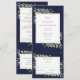 Um convite de casamento tudo-em-um com folhas de folhagem botânica elegante em aquarela em um fundo azul-marinho e uma moldura dourada chique. O convite inclui um cartão de RSVP que pode ser cortado e detalhes das informações dos convidados. Desenhado por Thisisnotme©
