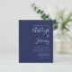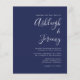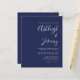 Este simples convite de casamento moderno apresenta texto branco em um fundo azul marinho. Adicione os nomes da noiva e do noivo em caligrafia manuscrita estilosa e os detalhes em fonte sans serif. O verso é uma tonalidade correspondente de azul marinho sólido.