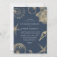 Este convite para o casamento apresenta pincel d'água traçado em cores azuis profundas com sotaques dourados imitando ondas na praia, o que o torna uma escolha perfeita para um casamento de verão ou praia. Ele é minimalista e elegante em opções de layout e fontes. Também é muito fácil de personalizar. Outros itens desta coleção complementam-no muito bem, por isso, vejam toda a coleção "Waves de Aquarela" na nossa loja.
