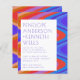 Convite de Casamento Retro Único com Linhas Curvas Coloridas em Azul Brilhante e Vermelho Laranja Econômico