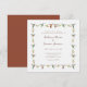 Este convite de casamento único para os amantes de beija-flores apresenta beija-flores Allen e Rufous pintados à mão e elementos florais para acompanhar os detalhes do seu casamento. Personalize com os nomes da noiva e do noivo. O verso do cartão é em terracota sólida.