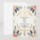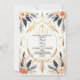 Convide seus convidados para celebrar seu amor com o nosso "Convite de Casamento Boho Chic Dourado e Floral". Este design elegante apresenta uma moldura dourada sofisticada inspirada no art déco, completa com velas delicadas e borlas, rodeada por um arranjo lindo de flores em tons suaves de pêssego e azul-marinho no estilo boêmio. Os detalhes botânicos intrincados e os acentos dourados sutis criam uma sensação luxuosa e romântica. Este convite é totalmente personalizável para incluir seus nomes ("Noiva e Noivo"), data do casamento e detalhes do local. É a escolha perfeita para uma celebração de casamento elegante e inesquecível.
