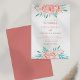 Convite de Casamento Boho com Flores Rosa e Pêsseg