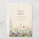 Este convite de casamento elegante apresenta um delicado fundo creme adornado com uma variedade requintada de flores silvestres. Tons suaves de rosa beijo, lavanda suave e verdes discretos criam uma atmosfera caprichosa e romântica. As flores silvestres são artisticamente dispostas em torno das bordas, emoldurando o texto com um toque natural e charmoso.