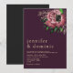 Simples, moderno, boêmio, elegante convite de casamento floral roxo com monograma no canto superior direito e adorável flor de rosa em aquarela.