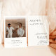 Este adorável Convite de Casamento apresenta um design minimalista limpo com sotaques de caligrafia moderna e é perfeito para carregar uma foto sua e da sua futura esposa! Edite facilmente a maioria dos textos para corresponder ao seu evento! As cores de texto e de fundo são totalmente editáveis —> clique no botão "Editar usando a ferramenta Design" para editar!