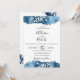 Marinho de lavagem com aquarela com delicados galhos brancos desenhados com a mão, convite para casamento.